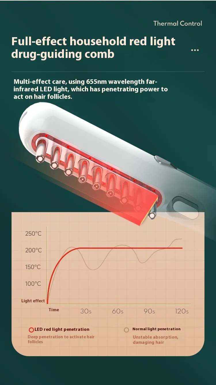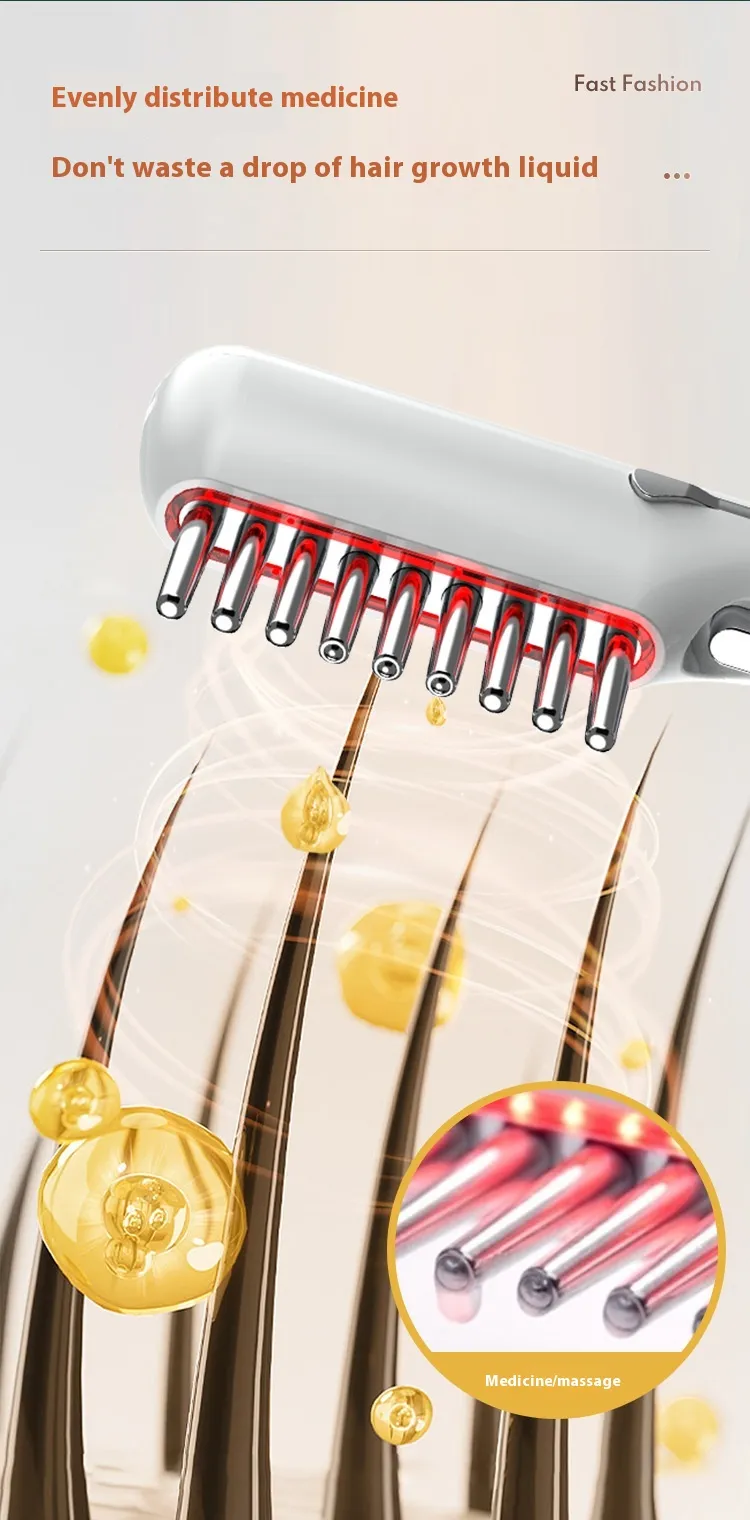 The Hair Growth Massage Comb is an innovative health care device designed to promote hair regrowth and scalp health through a combination of massage and medicine application. This device is perfect for individuals looking to address hair thinning, stimulate hair follicles, and improve scalp circulation. Featuring an ergonomic design, the comb fits comfortably in your hand, allowing for easy use as you massage and nourish your scalp. The built-in medicine supplying function ensures that hair growth treatments or essential oils are evenly distributed, directly reaching the roots for maximum effectiveness. Its gentle, vibrating massage action stimulates the scalp, enhancing blood flow and promoting healthier hair growth.