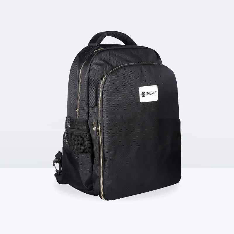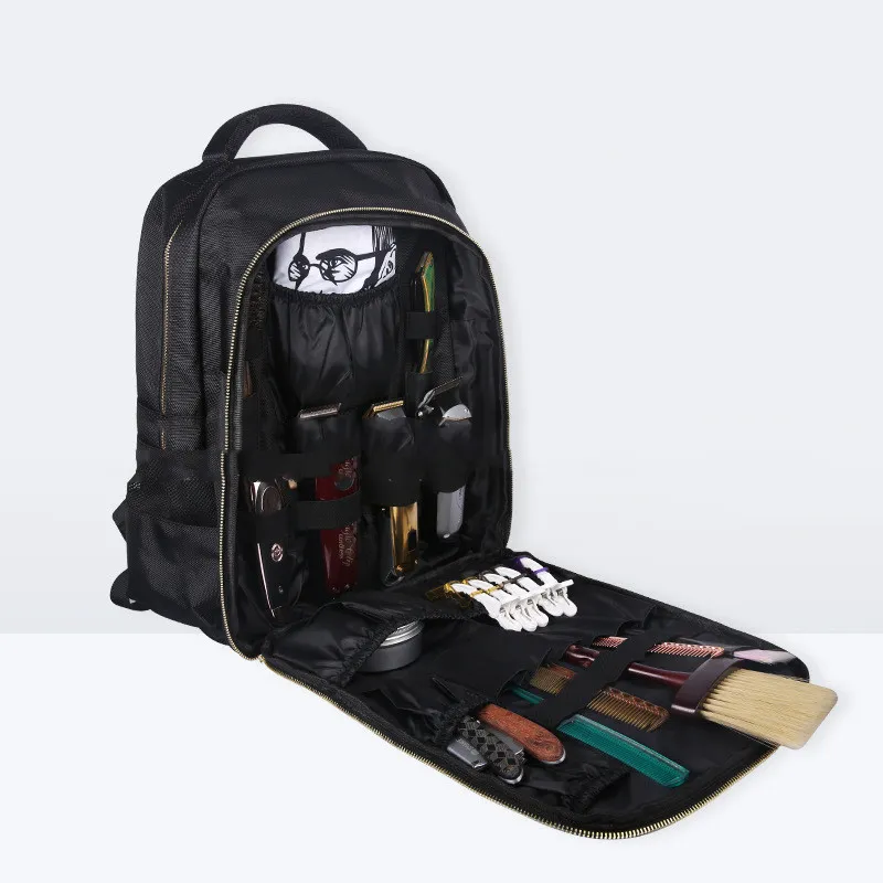 The backpack features multiple compartments specifically designed for scissors, clippers, combs, and other essential hairdressing tools, ensuring everything has its place.