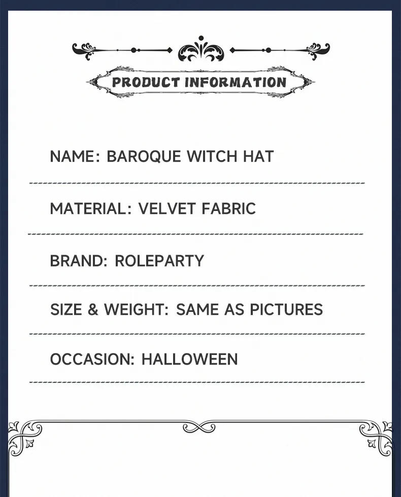 Elevate your Halloween costume with this stunning Baroque Witch Hat, designed to add a touch of elegance and mystery to any outfit. Whether you’re attending a spooky party or trick-or-treating, this unique accessory will make you stand out. The intricate baroque-inspired details and elegant shape of the hat create a perfect balance of style and spookiness.
