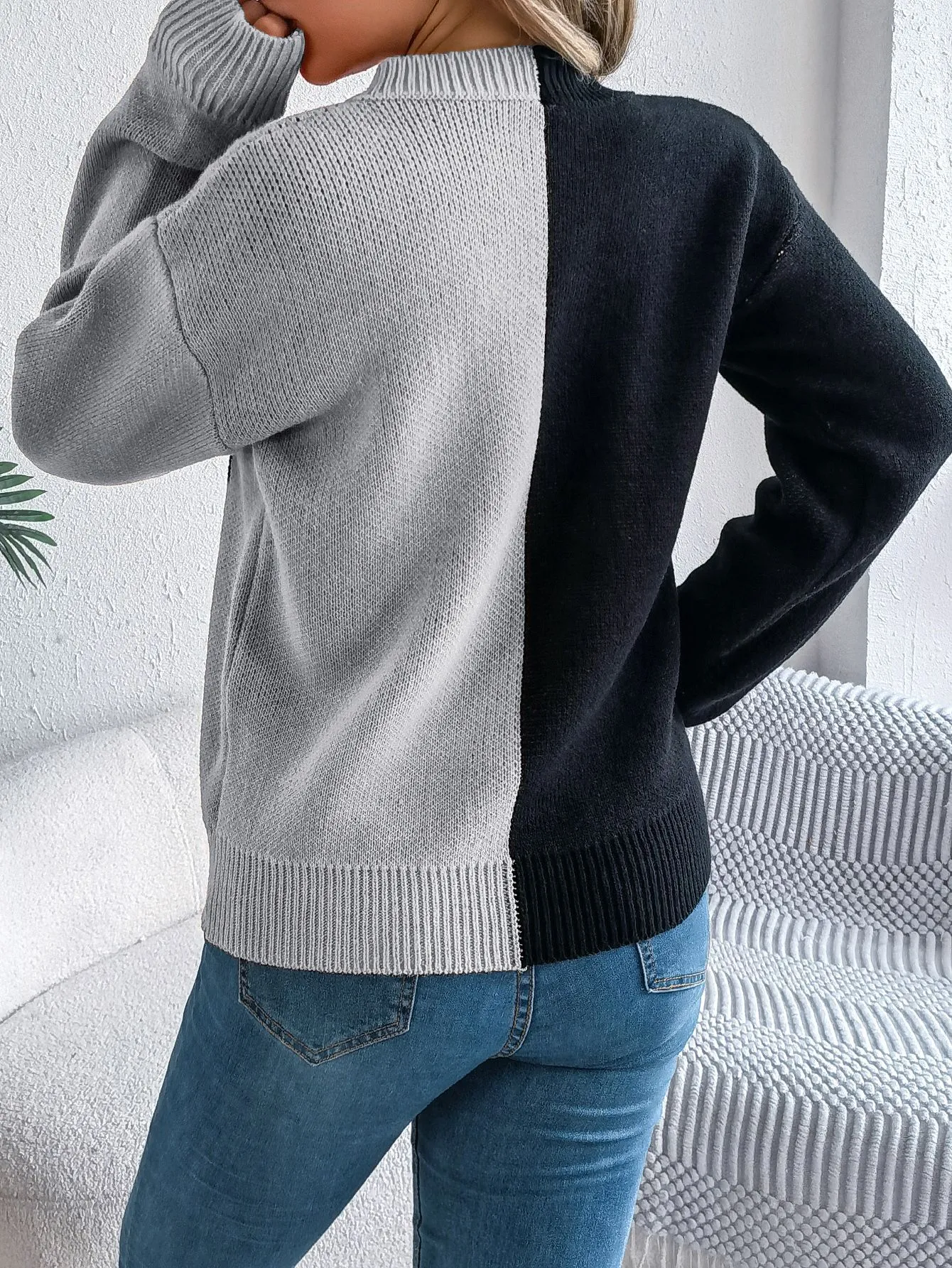 Halloween Contrast-Color Pullover Sweater - Perfect for Chilly Days