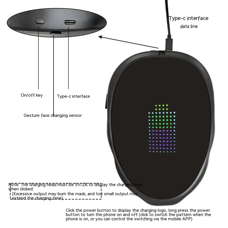 1.【EASY TO USE】The LED face mask has two types of settings: gesture sensory to change the display or manual display.