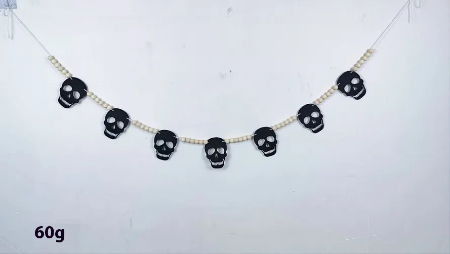 Halloween Felt Bat Ghost Skull Wooden Beads Garland Banner