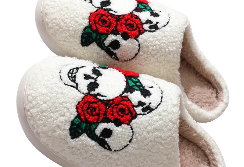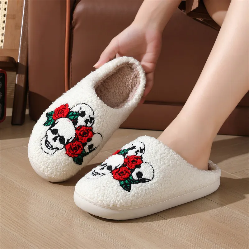 Halloween Skull Rose Slippers Winter Warm Indoor Floor Bedroom Home Slipper For Women