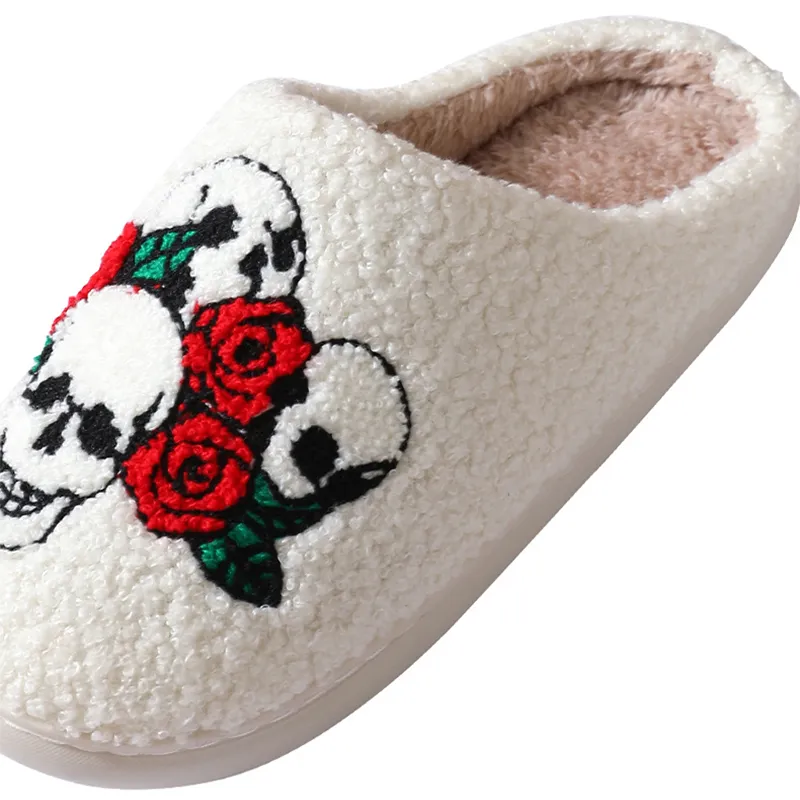 Embrace the Halloween spirit while keeping your feet warm with our Halloween Skull Rose Slippers. These stylish and cozy slippers combine a spooky skull design with elegant rose accents, making them the perfect addition to your indoor footwear collection this winter.