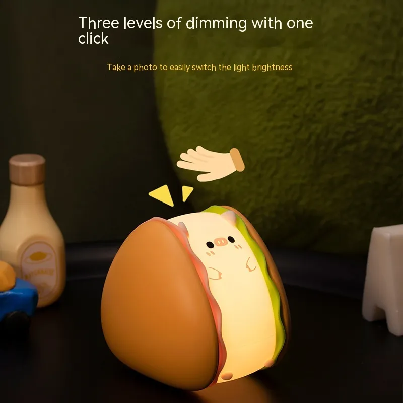 Hamburger Pig Small Night Lamp USB Rechargeable Bedroom