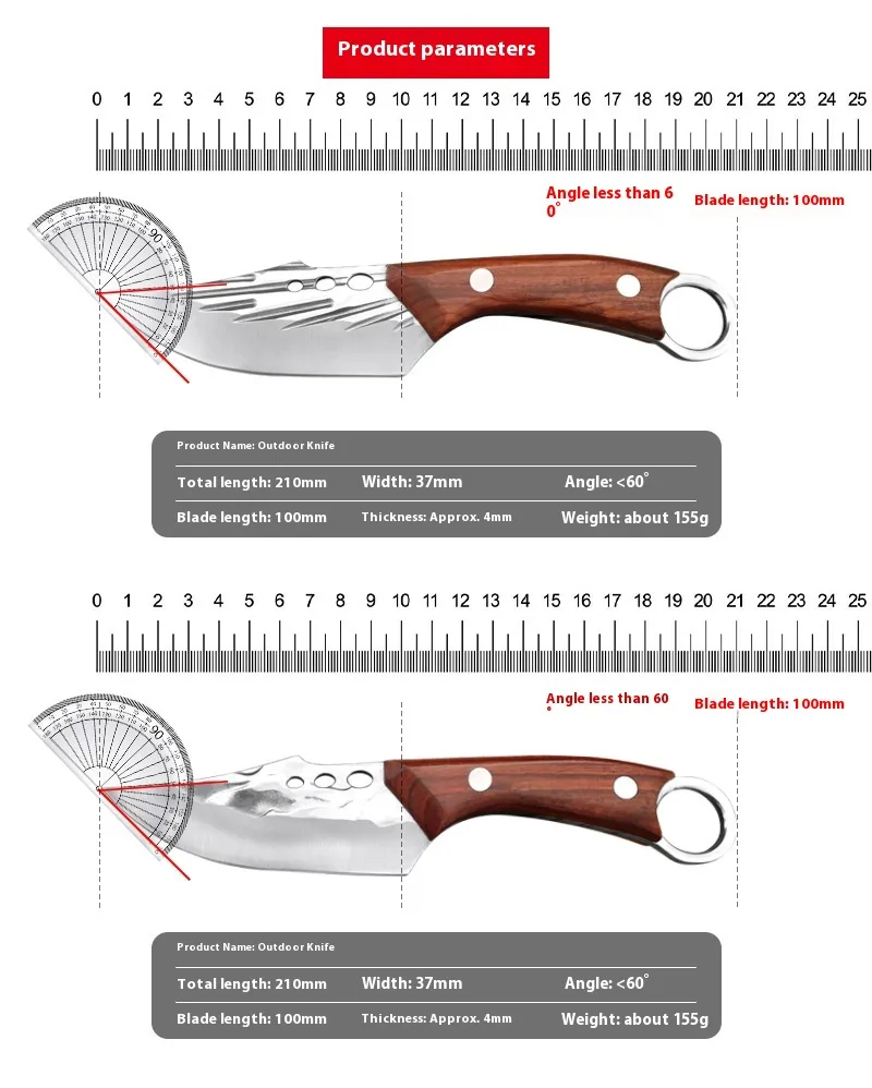 - Durable and Versatile: Ideal for use in both kitchen tasks (cutting, slicing, dicing) and outdoor activities (camping, hunting, survival).
