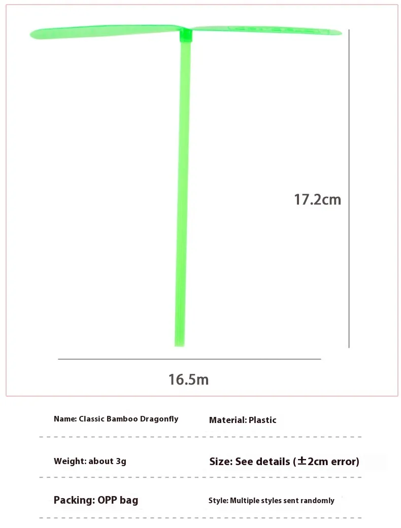 Bring traditional charm and hands-on fun to playtime with the Hand Rub Non-Luminous Bamboo Dragonfly. This simple yet fascinating toy uses a small bamboo rotor that spins when rubbed between your hands, offering endless entertainment for children and adults alike. Perfect for promoting outdoor play, tactile skills, and an appreciation for classic, eco-friendly toys.