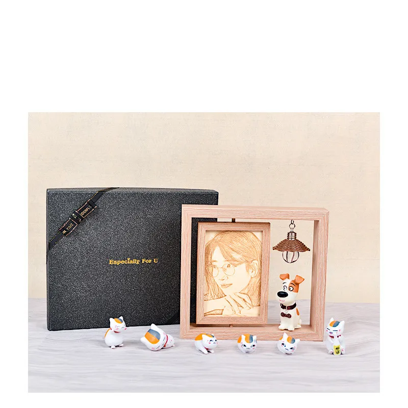 Zodiac series - Calf rotating photo frame -6 inches - Gift box - Gift pearl lamp + cat decoration *6