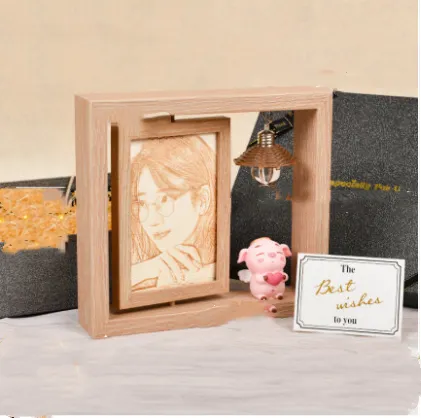Style: Vintage Color Classification :1 pig rotary picture frame -6 inches - Gift box - water pearl lamp