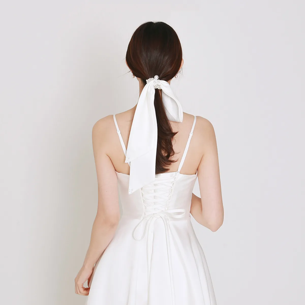 Handmade Simple White Satin Pearl Bow Hair Loop