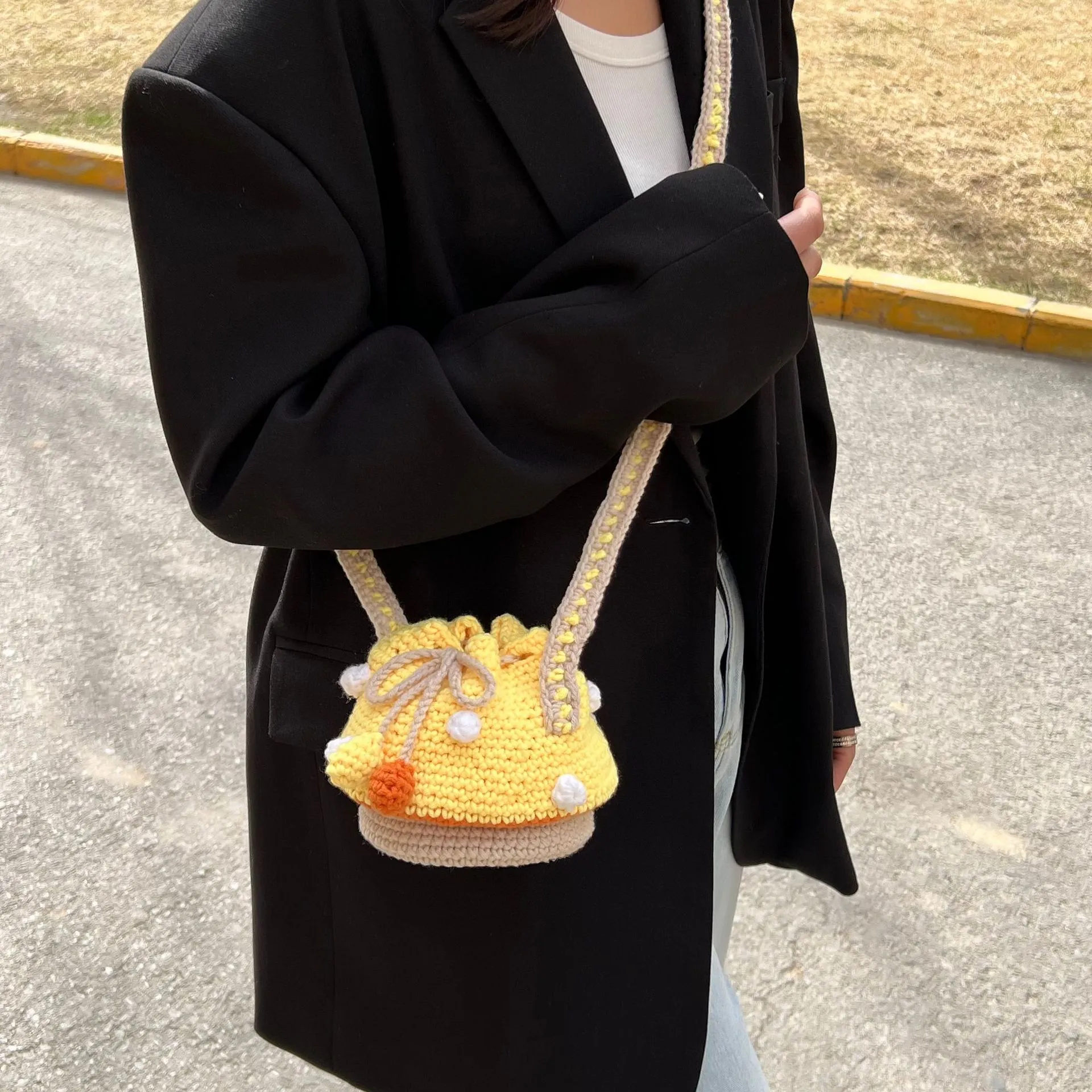 Handmade Wool Woven Mushroom Bag