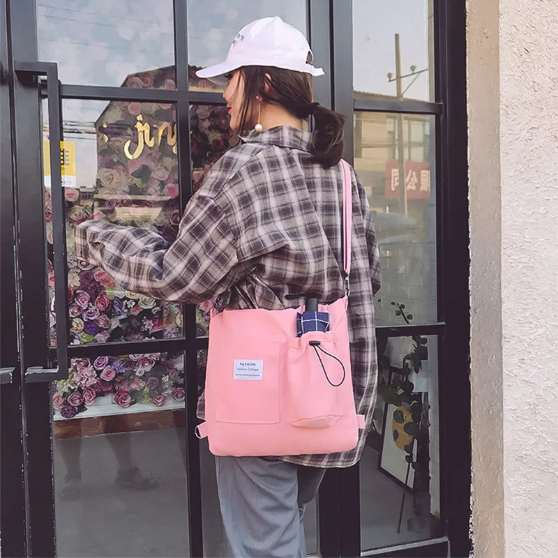 Harajuku Canvas Bags Students Handbag With Pockets Preppy Buckpack Shoulder Bag For Women