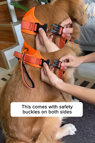 Adjustable Breathable Harness: Our adjustable dog harness has 4 easily adjustable elastic belts around the body. Made of nylon, composite waterproof fabric, double-layer elastic bonding, and sandwich mesh to prevent damaging to dog’s skin. Easily adjustable, create a perfect fit for the growing dogs. 2 sturdy metal belt loops on the chest and back to prevent the tearing of the harness. The leash can also be installed when necessary.