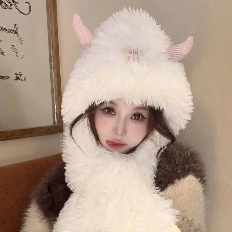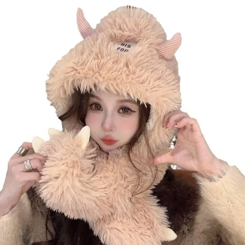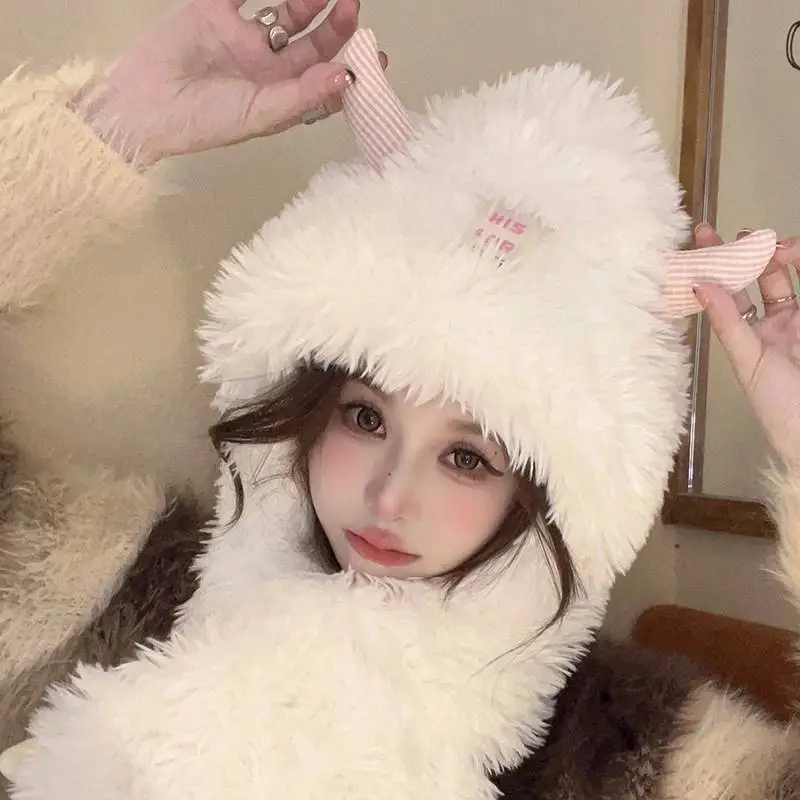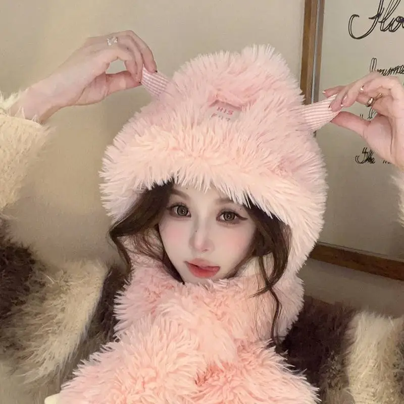 Hat And Scarf Integrated Cartoon Versatile Plush Ear Protection