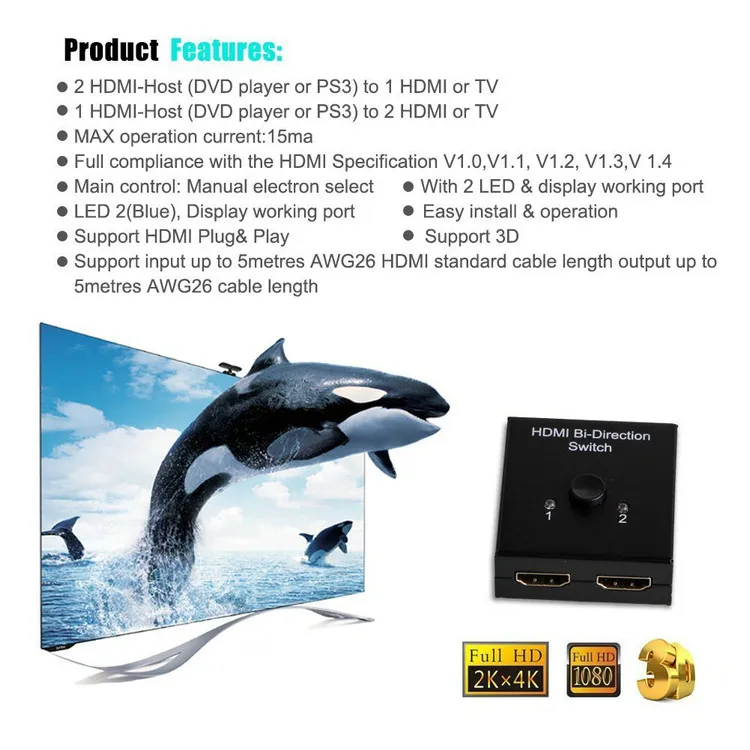 With support for HD 1080p resolution and compatibility with most HDMI-enabled devices, the switch ensures clear, high-definition video and audio output for your TV, monitor, projector, or other display equipment. Whether you’re switching between a game console, laptop, set-top box, or other HDMI devices, this switch ensures a smooth and stable connection without signal degradation.