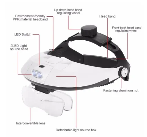Designed to be worn on the head, this magnifier allows for hands-free operation, enabling you to perform tasks with both hands while maintaining clear vision.