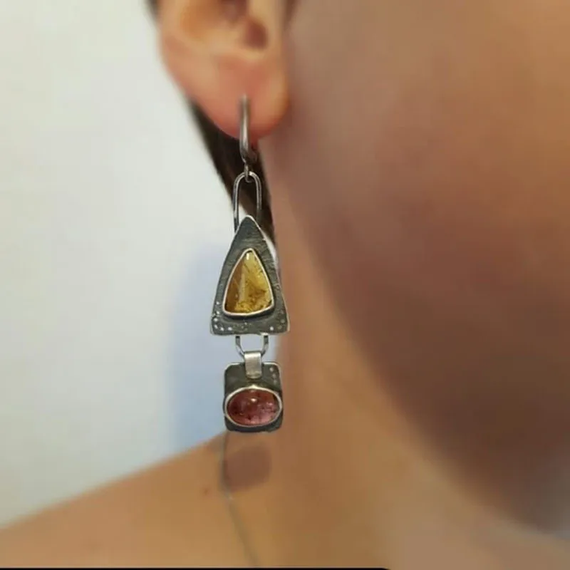 Hecheng Retro Geometric Triangle Metal Pendant Earrings Purple Orange Asymmetric Earrings Women's Retro Jewelry Gift Cross