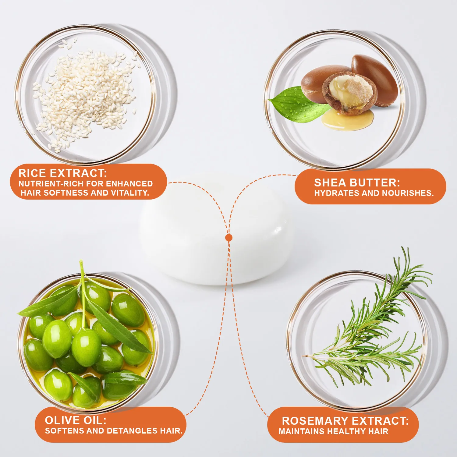 - Coconut Oil: Provides deep moisture, helping to hydrate and soften hair while preventing dryness.