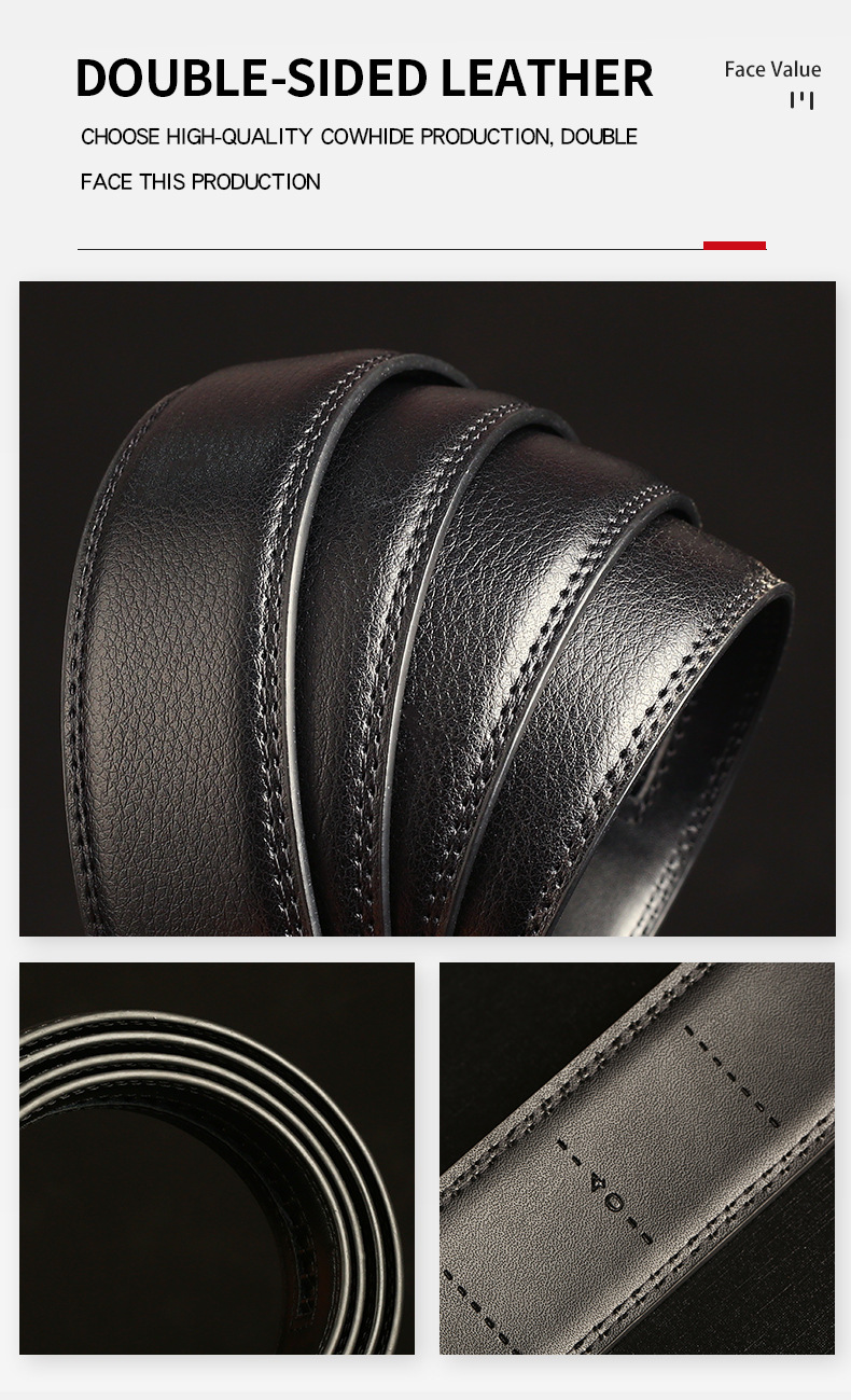 Premium Quality: Crafted from two-layer cowhide leather, this belt boasts exceptional durability and luxurious texture.