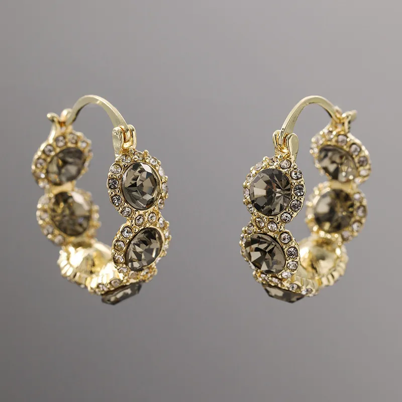 High-grade Gray Diamond Ring Ear Clip Earrings For Women