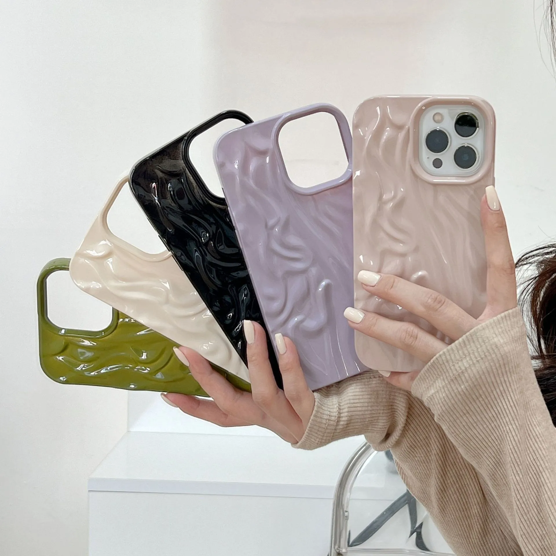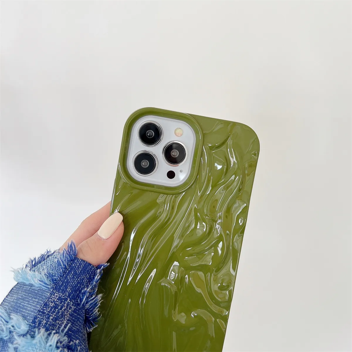 Protect your phone in style with the High-Grade INS Solid Color Water Ripple Silicone Phone Case, combining fashion, comfort, and durability.