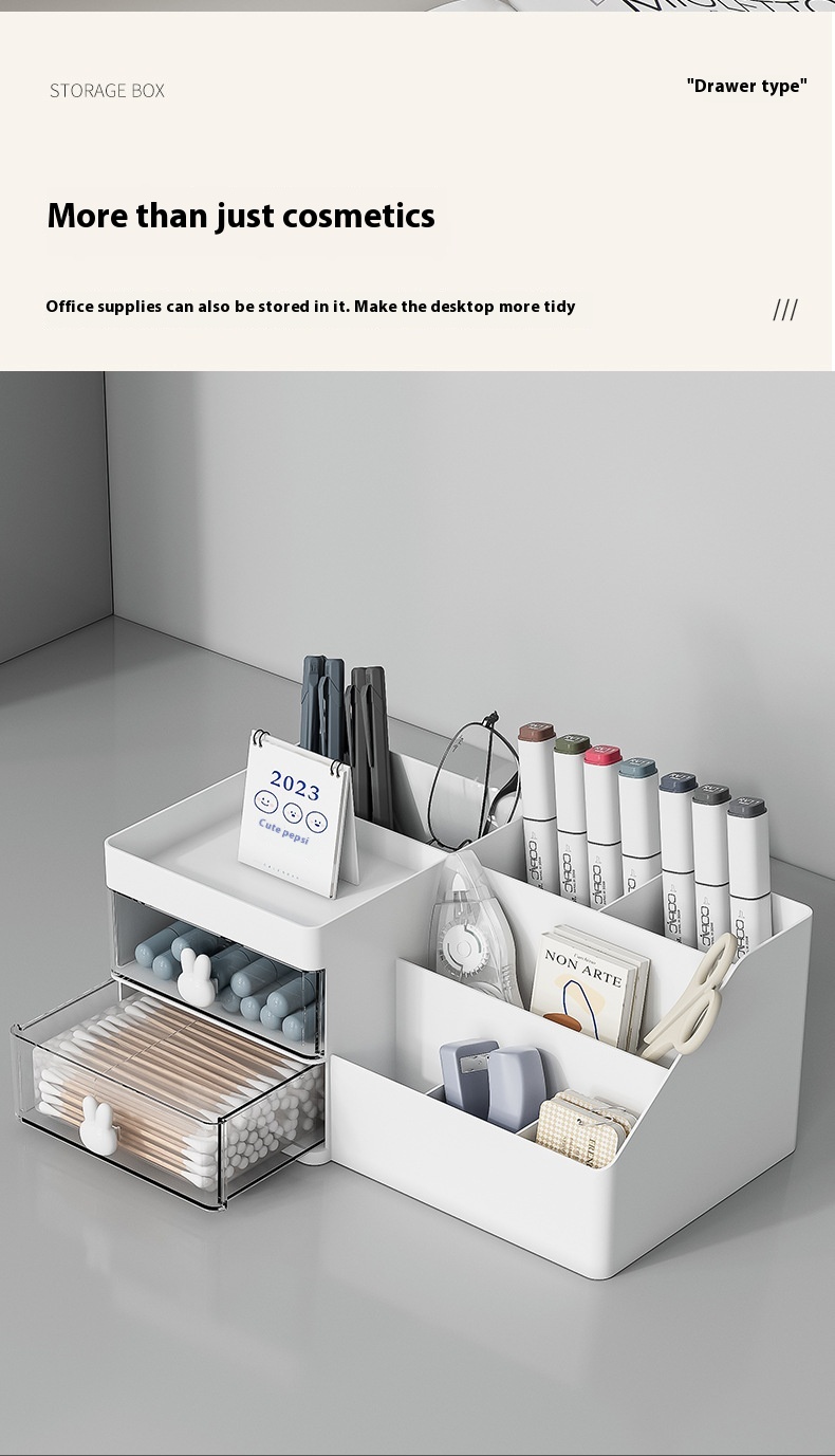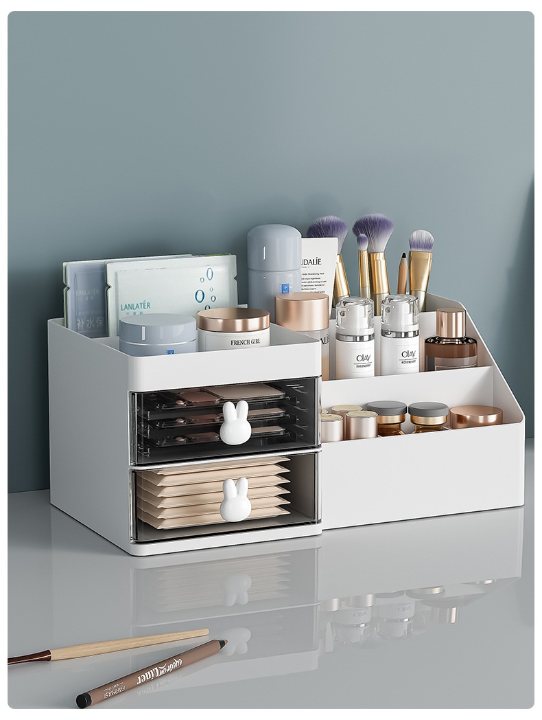 Organize your beauty essentials with our High-Grade Plastic Desktop Cosmetics Storage Box. Designed for durability and elegance, this storage solution offers ample space for all your makeup and skincare products, keeping your vanity neat and stylish.