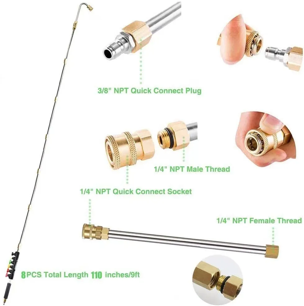 - Complete Set: Includes 7 essential accessories to tackle various cleaning tasks, from high-pressure rinsing to delicate washing.
