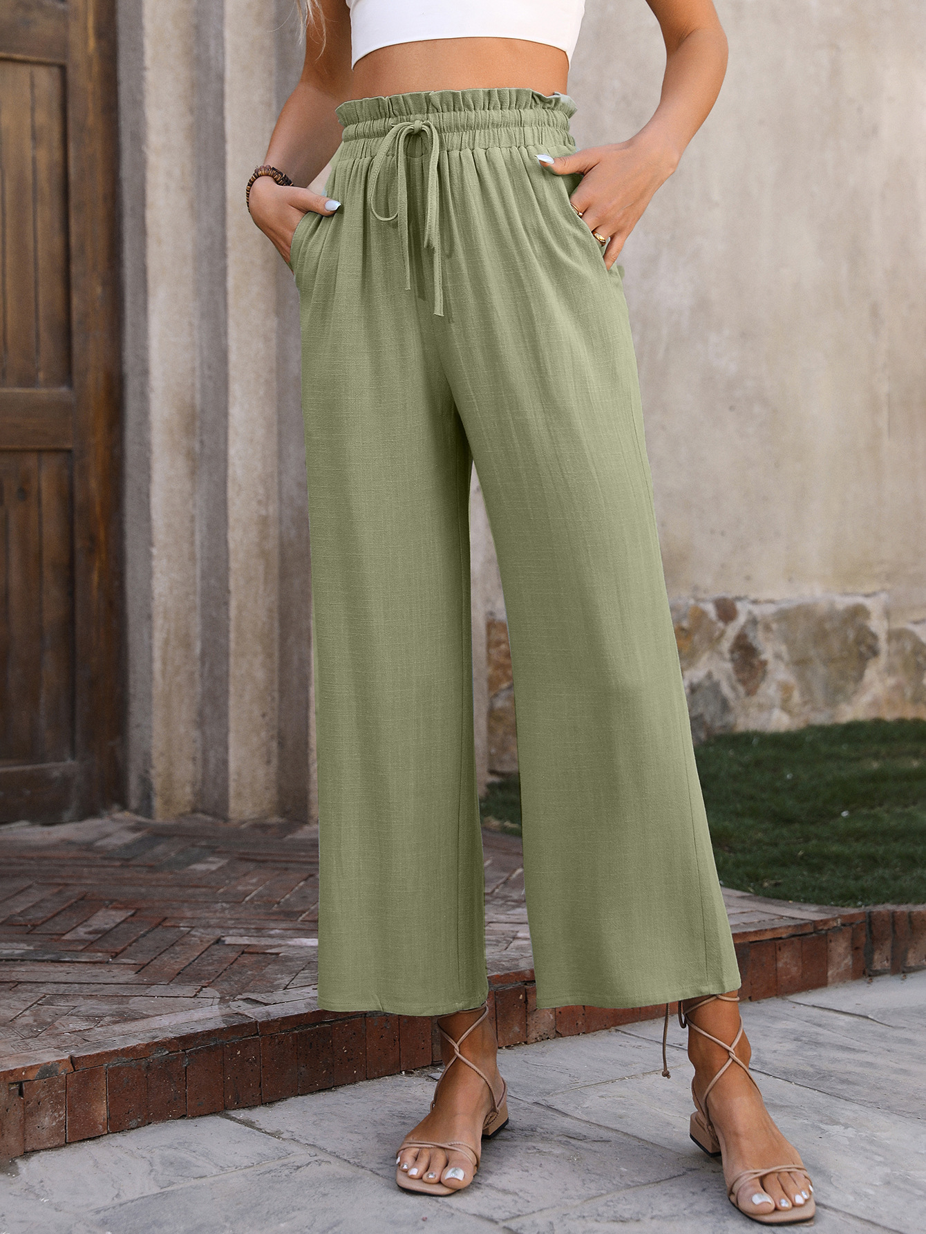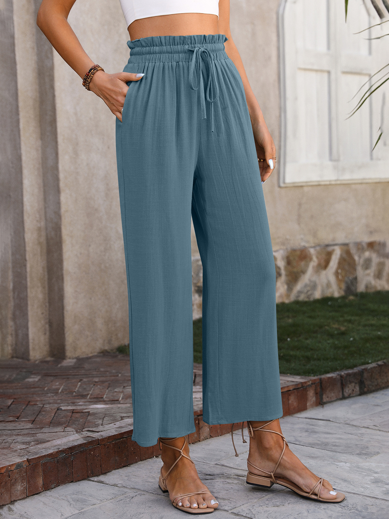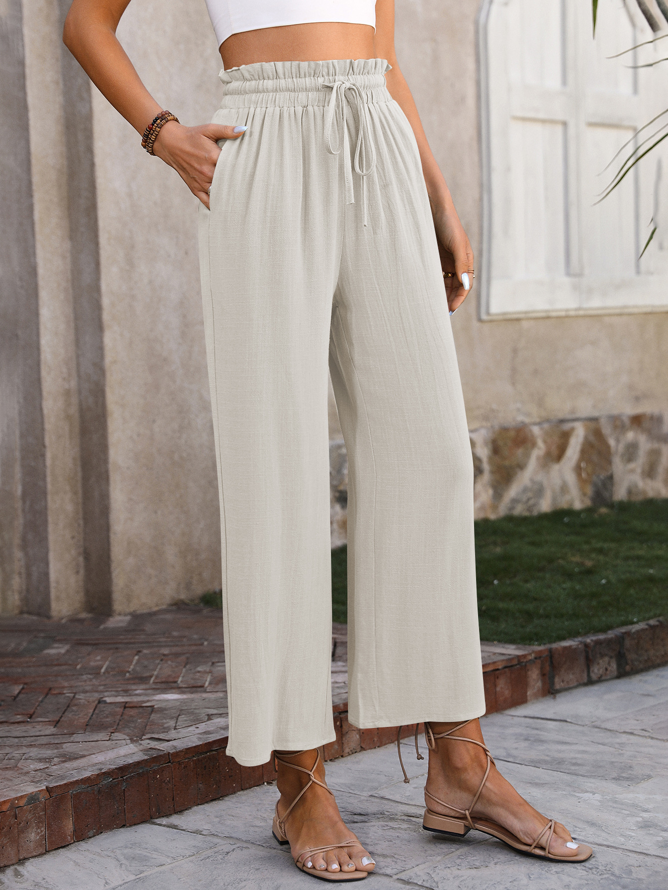 High Waist Drawstring Wide Leg Pants For Women's Clothing