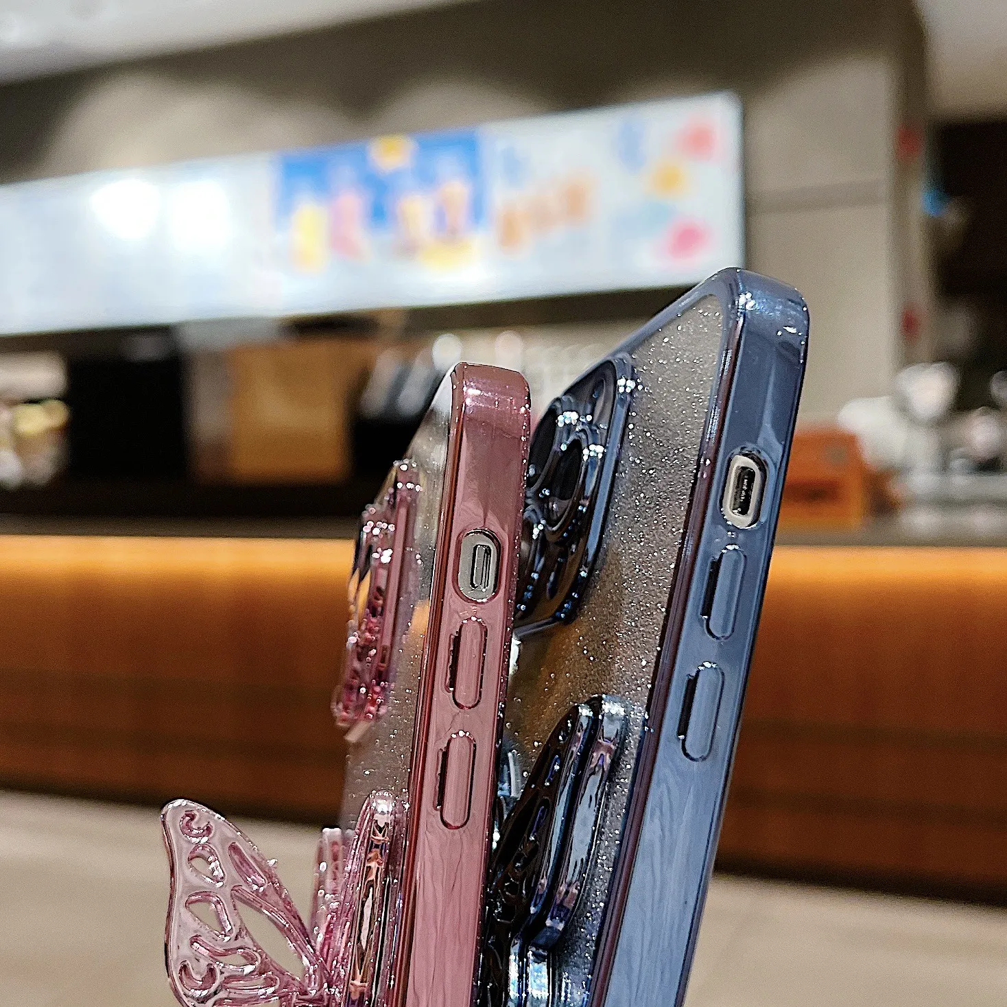 Hollow Butterfly Phone Case Gradient Transparent Plating Protective Cover