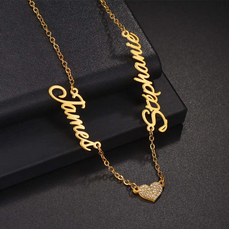 Hollow English Letter Diamond Heart Pendant