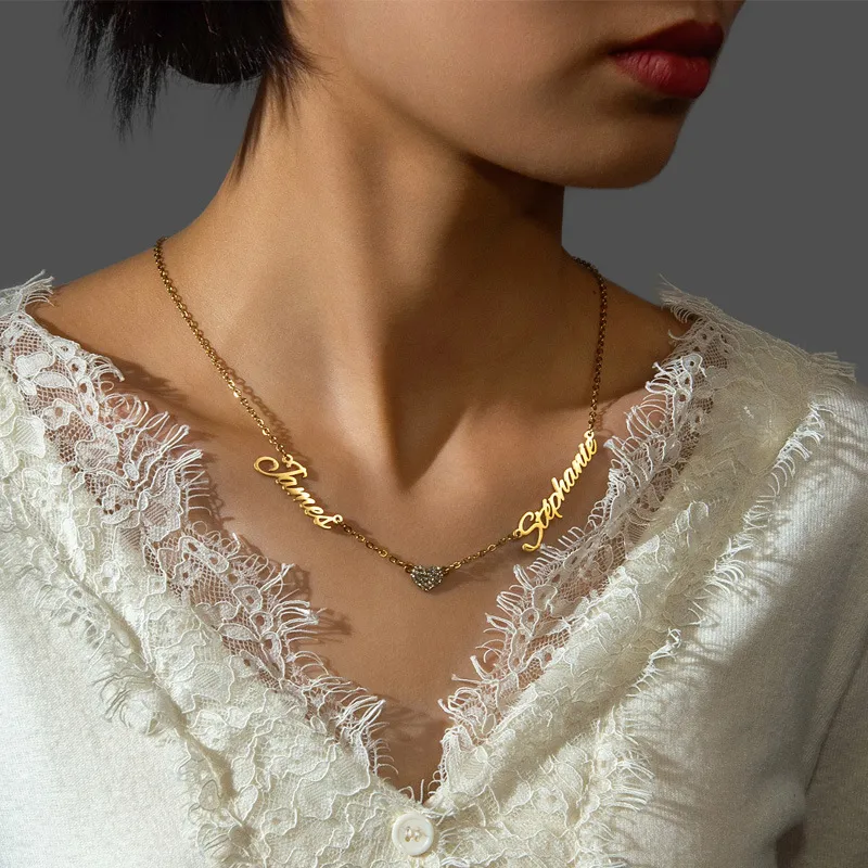 Hollow English Letter Diamond Heart Pendant
