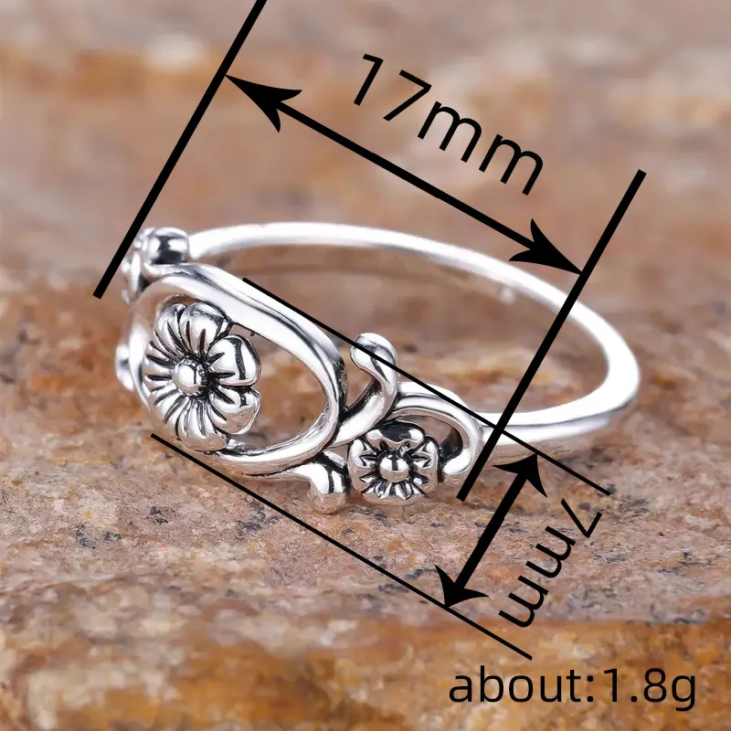 The retro floral design makes this ring a versatile accessory that complements casual, formal, and even bohemian styles.