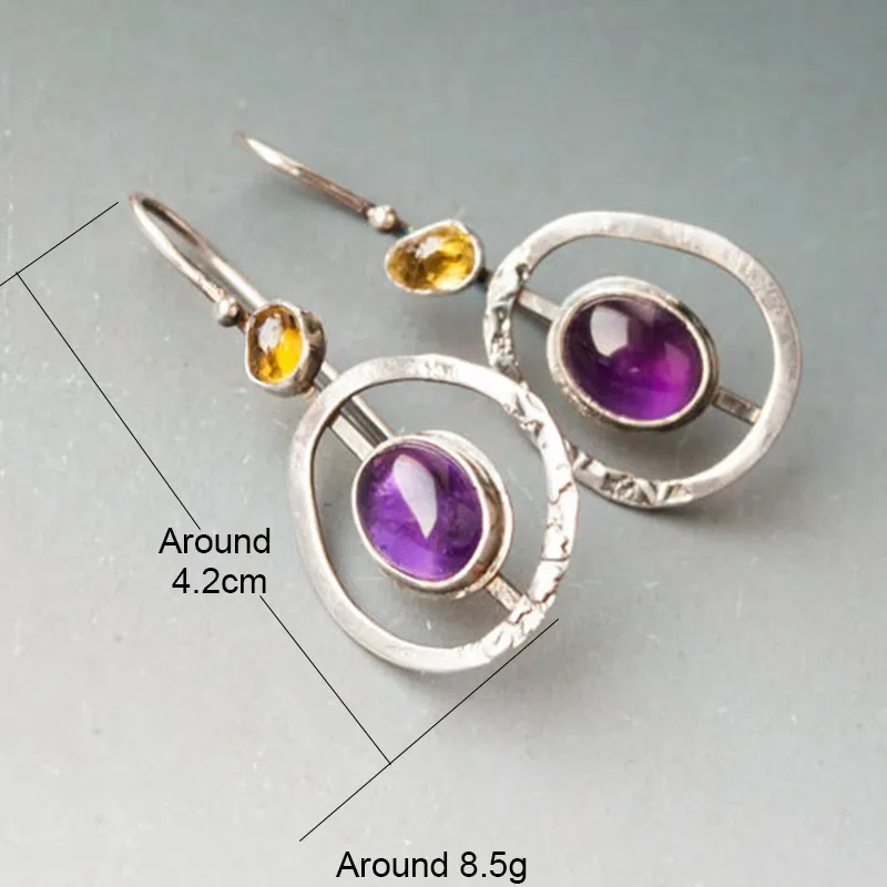 Crafted from high-quality materials, the Hollowed Purple Oval Stone Vintage Earrings are designed to last. The secure setting ensures that the stones stay in place, while the metal components resist wear and tear, making these earrings a long-lasting addition to your jewelry collection.