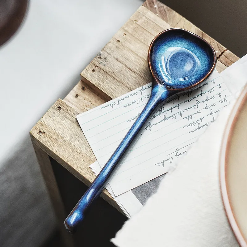 Home Creative Kiln Becomes Coarse Pottery Long Handle Stirring Spoon – Stylish and Functional Kitchen Tool