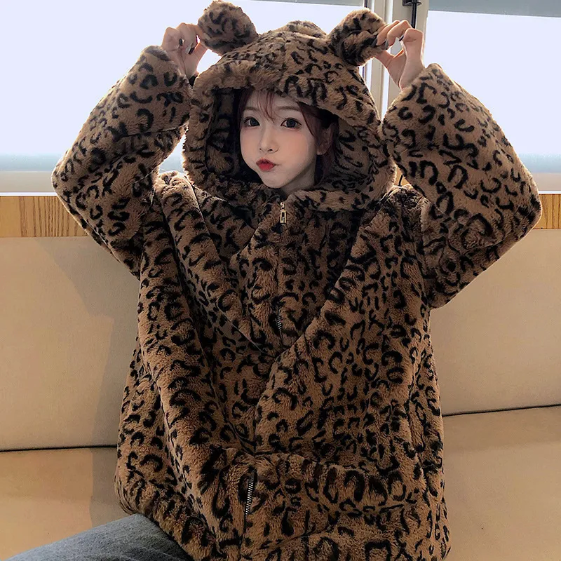 Hooded Korean Style Loose Coat – Long Sleeves with Plus Velvet Thickening for Ultimate Warmth