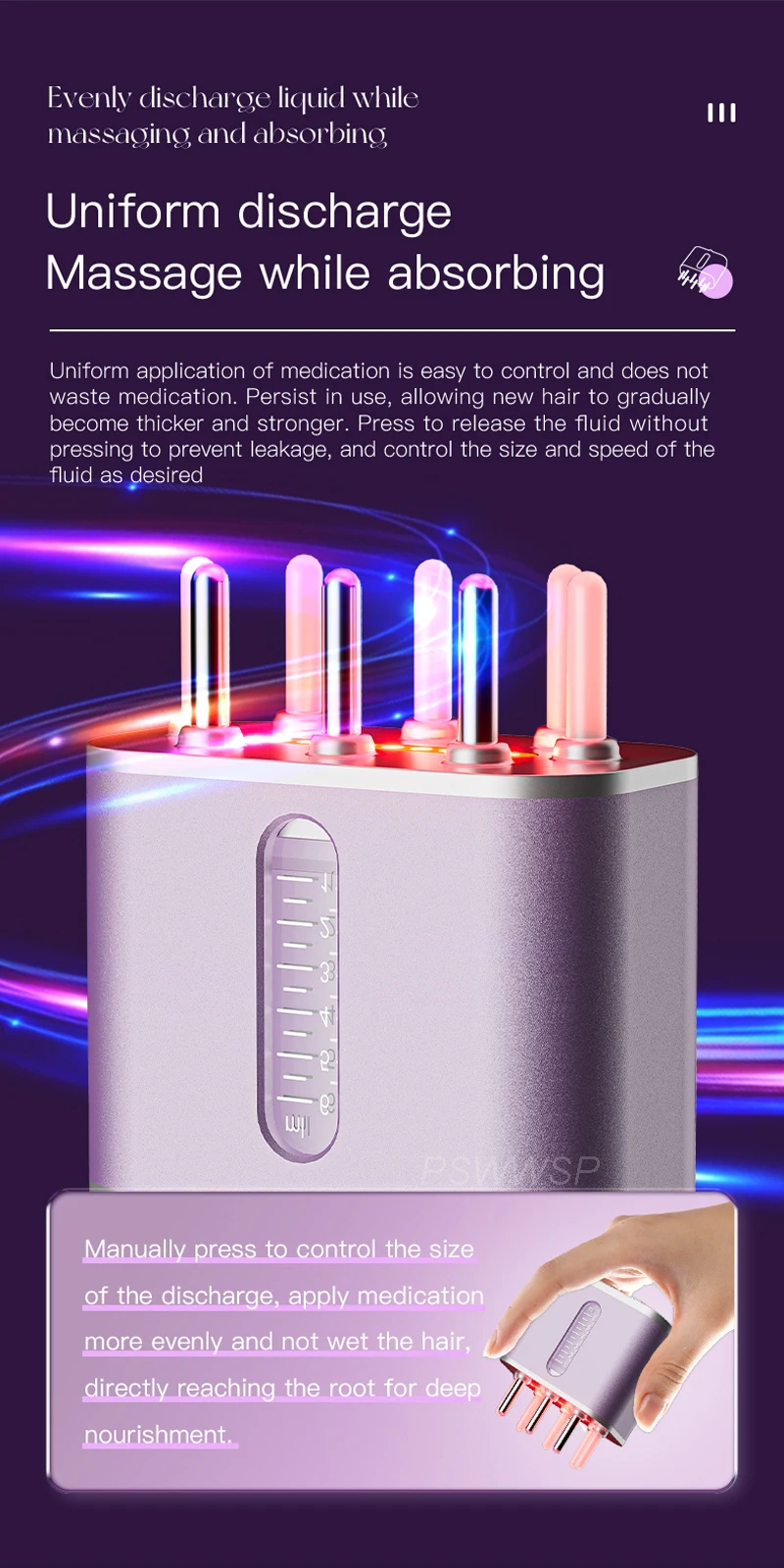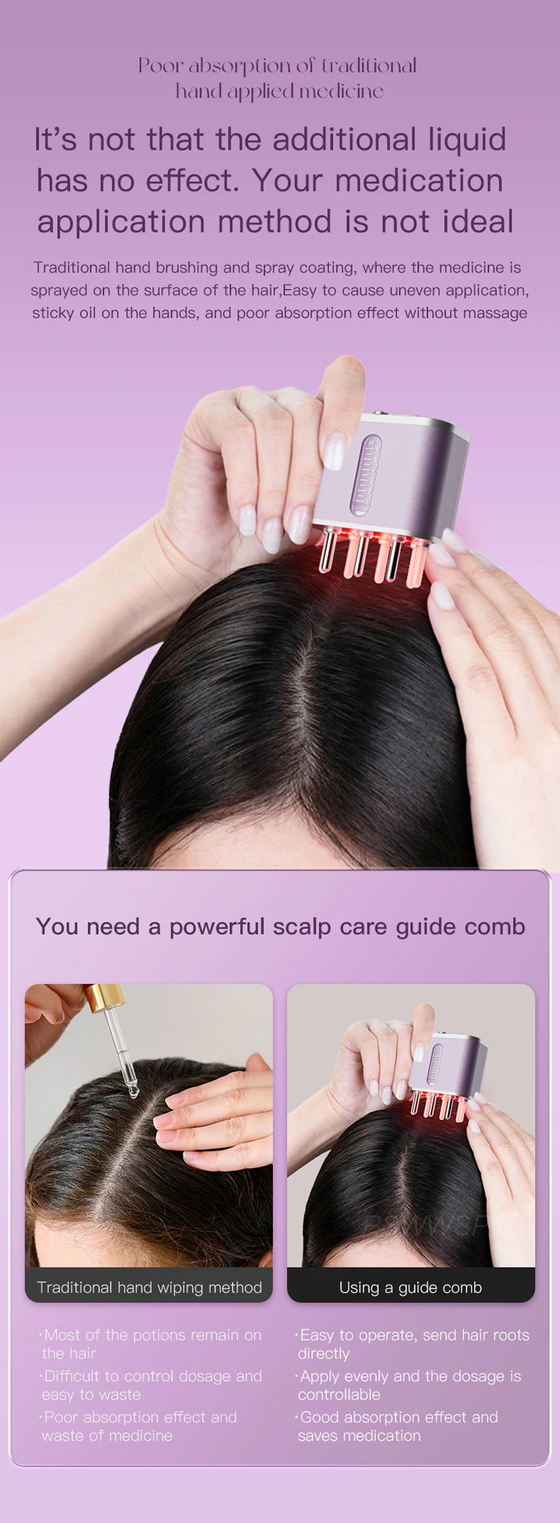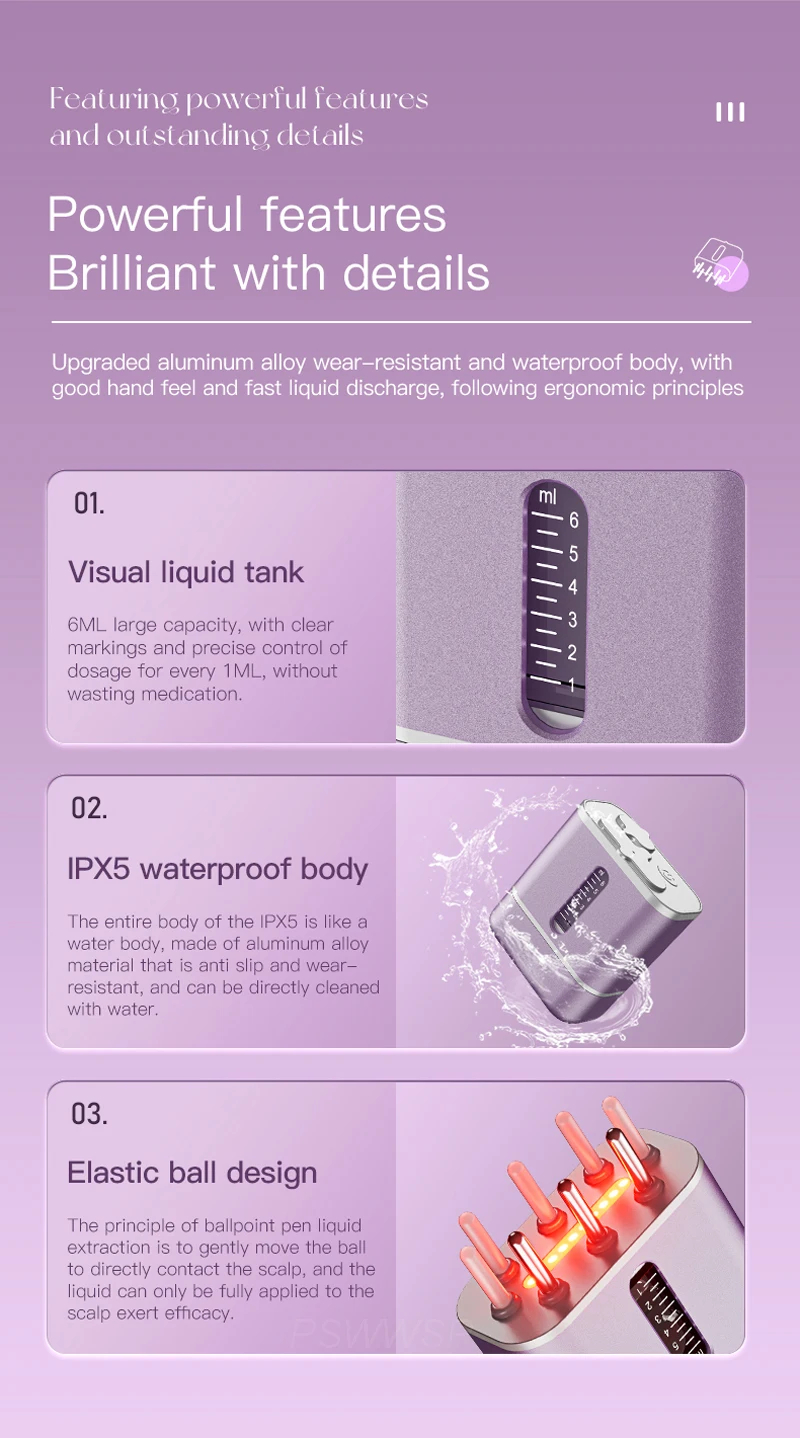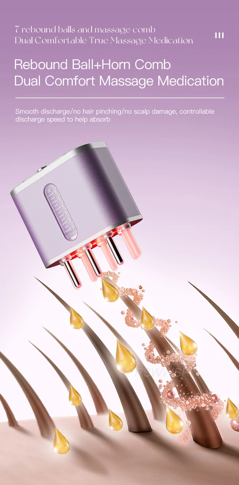 1. Micro-current + high-frequency vibration massage deeply soothes the scalp, promotes blood circulation, allows the nutrient solution to reach the hair roots, and better promotes the absorption of nutrients by the scalp.