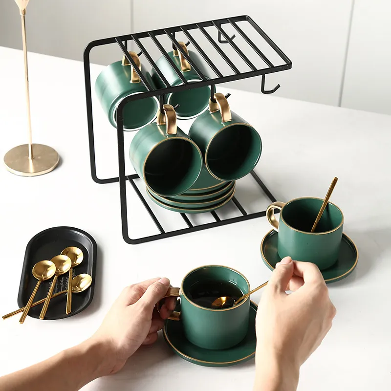 Emerald—6 cups, 6 saucers, 6 scoops + cup holder (gift box)