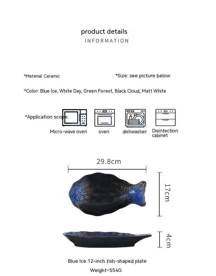 Color: 12-inch fish dish (ice blue),12-inch fish dish (daytime),12-inch fish dish (Green Forest),12-inch fish dish (Twilight cloud),12-inch