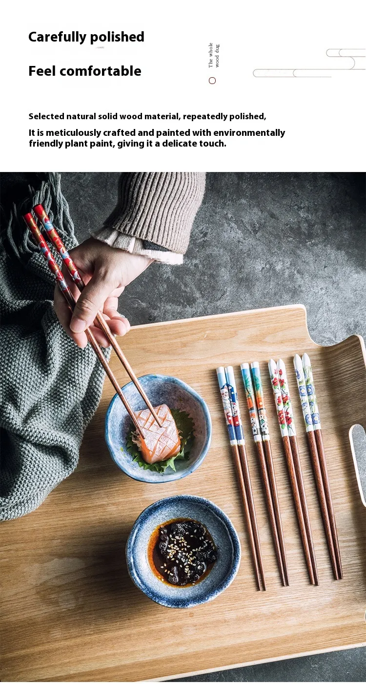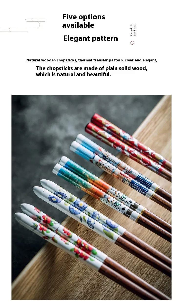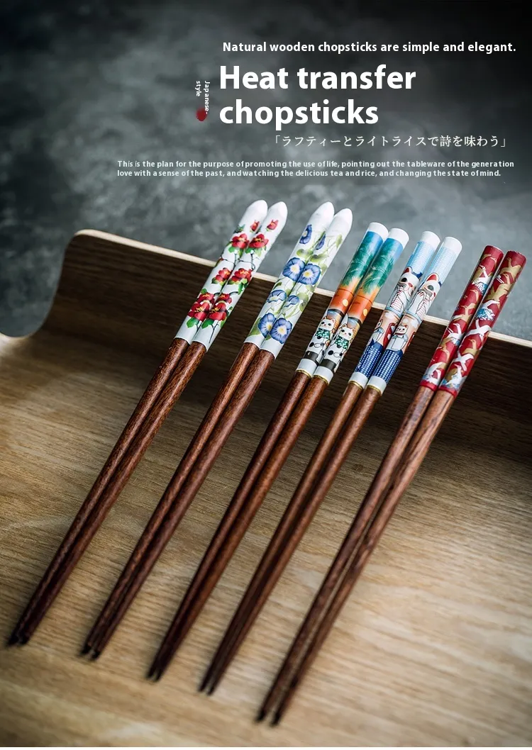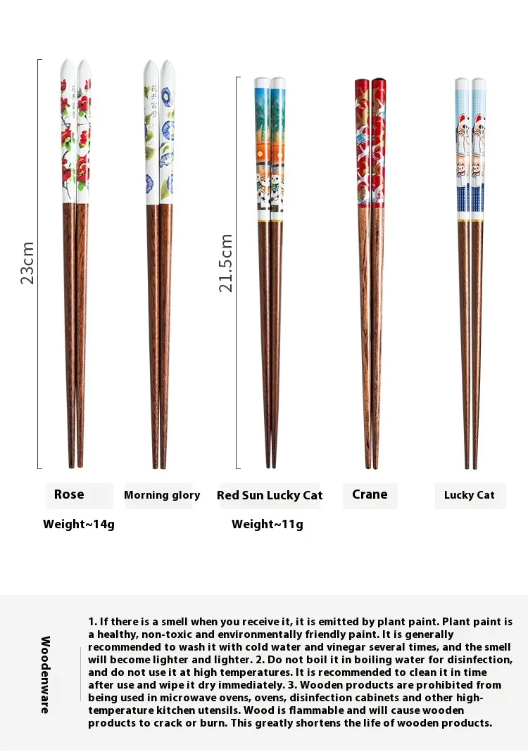 Household High-grade Non-slip Creative Lucky Cat Tableware Solid Wood Chopsticks