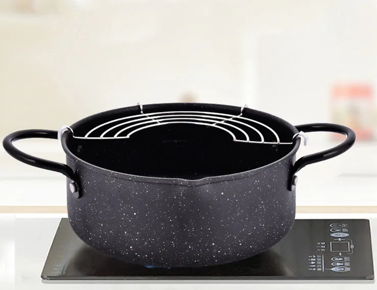 With a filter, this pan will solve the problem that the room is not enough to accommodate deep fryers to make fried foods and to satisfy