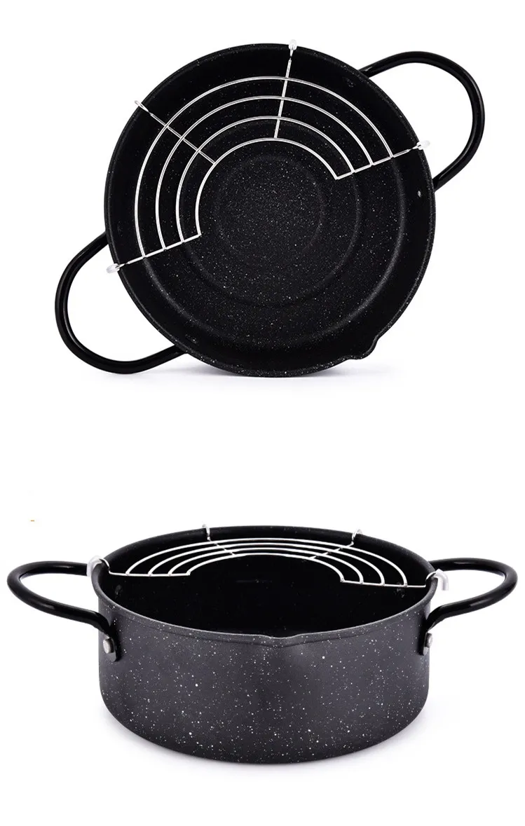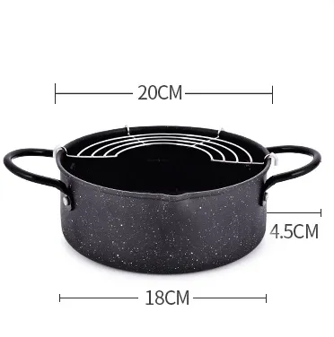This product is a small household cookware for frying food. Made of high quality iron, it is durable and has good insulation performance.