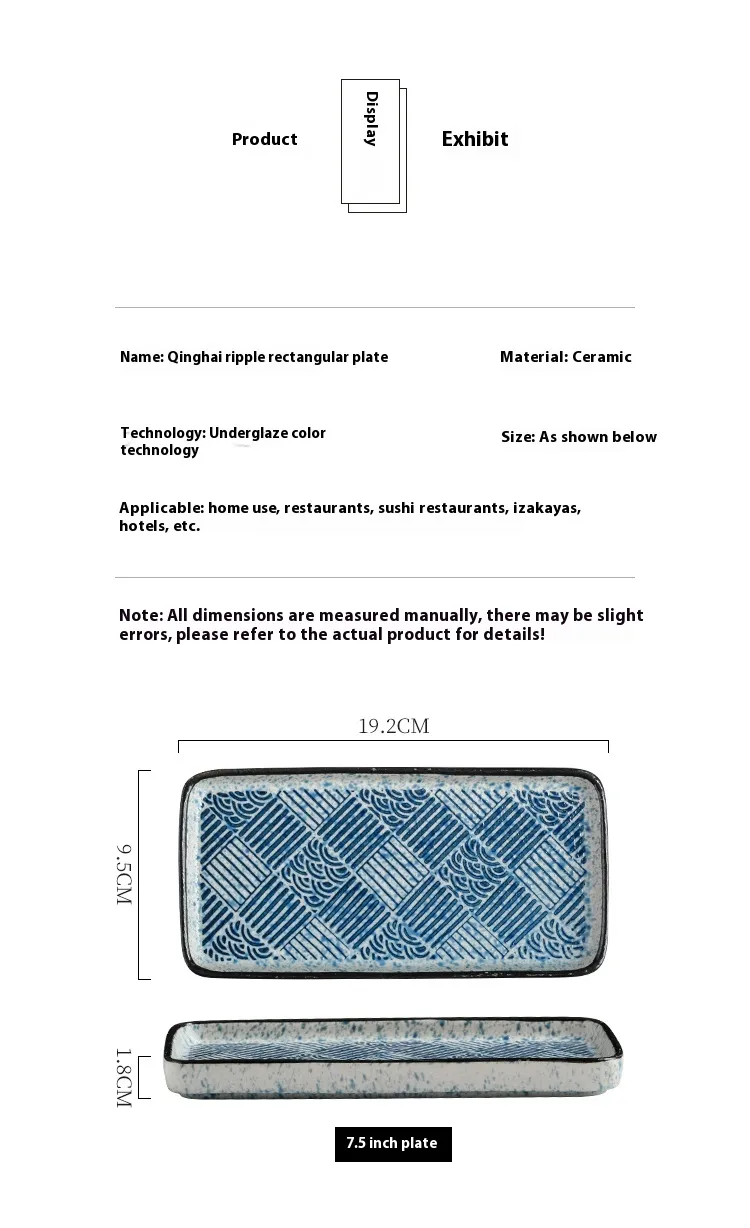 Household Rectangular Sushi Restaurant Dedicated Ceramic Dish