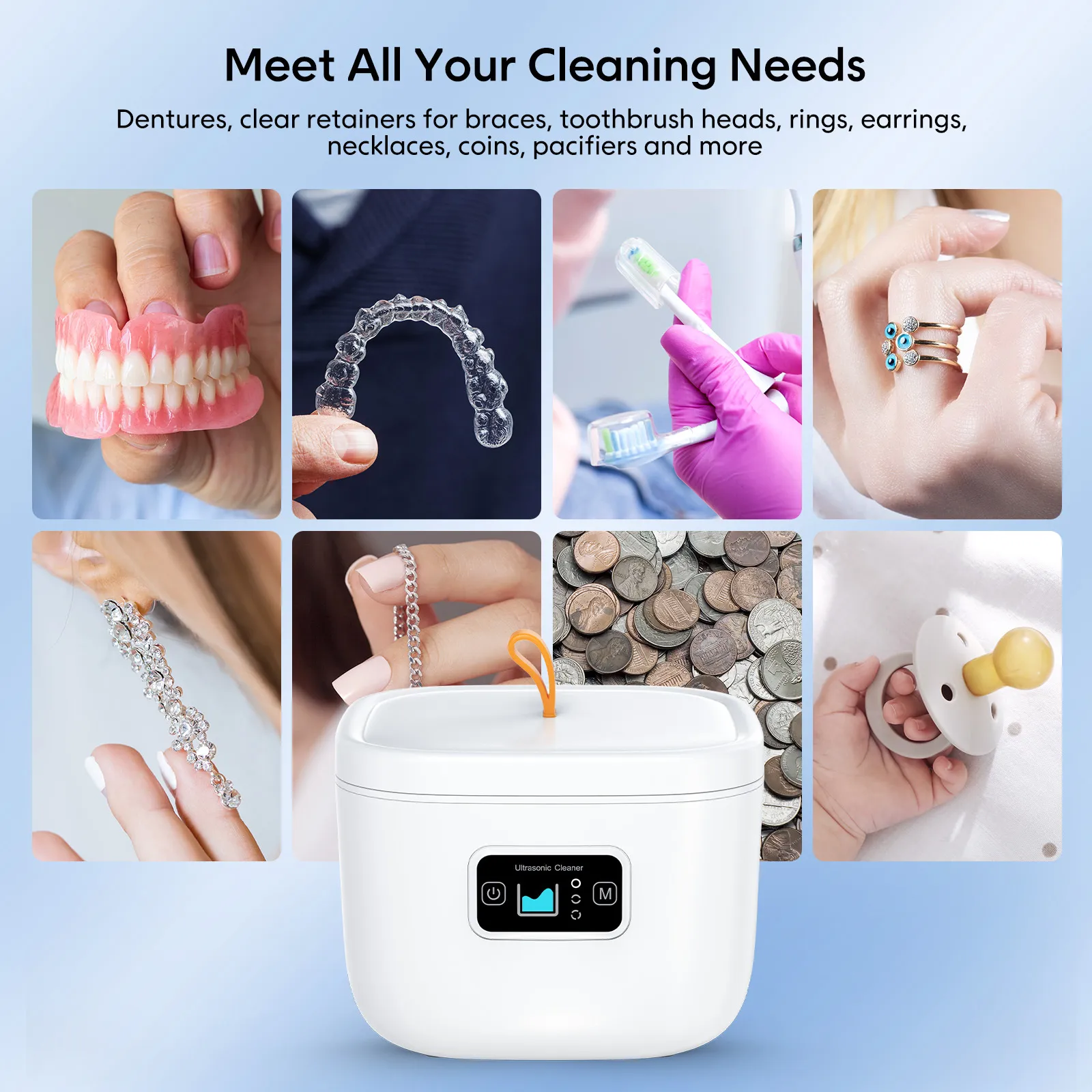 Multi-Functionality: Suitable for cleaning dentures, tooth sockets, watches, jewelry, and other small items.