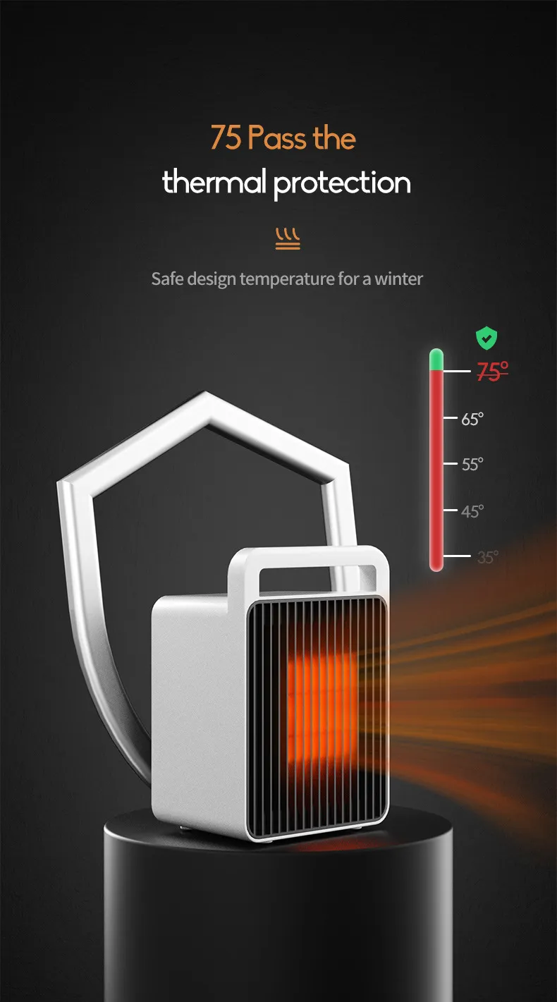 This mini heater is designed to be energy-efficient, providing warmth without unnecessarily high electricity consumption. The compact size means it heats up smaller spaces quickly, reducing the amount of energy needed to achieve the desired temperature. This makes it an eco-friendly and cost-effective option for personal heating.