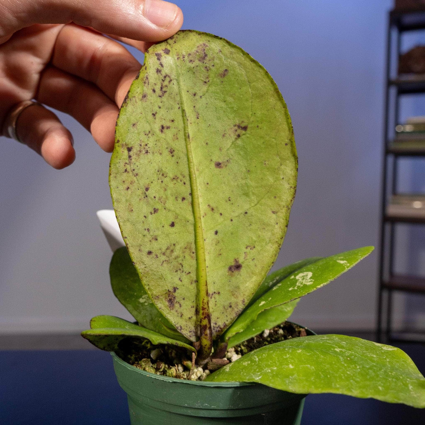 Hoya mitrata like many Hoya may develop purple spots or streaks on the undersides of the leaves. This is completely natural and normal and sometimes the entire underside of the leaf can turn purple. This is not disease and is actually a sign that the plant is healthy. [See the photo for example].