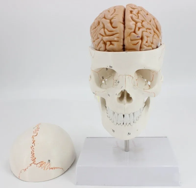 structure of the brain and digital signs. The cranial model can be disassembled and assembled from the flexible cervical spine. It also
