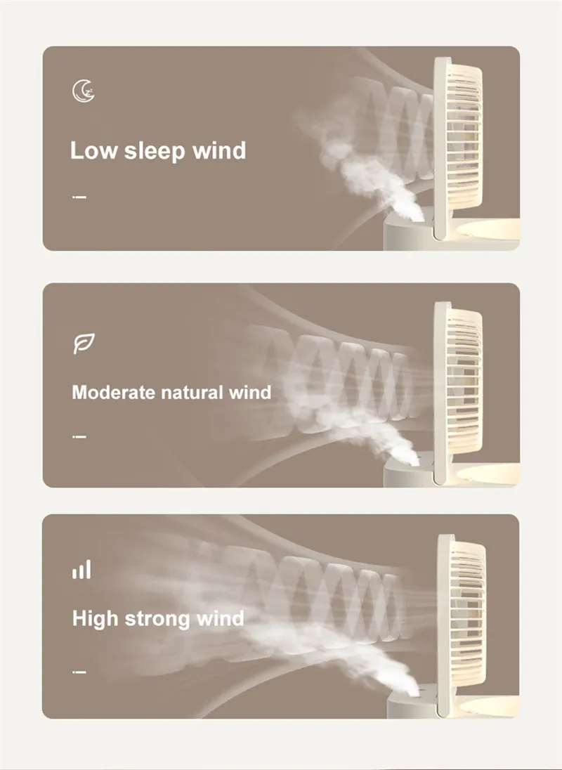 In addition to its cooling and humidifying functions, this fan is equipped with a built-in night light, creating a soft and soothing ambiance for nighttime use. The USB-powered design ensures that you can plug it into any USB outlet, power bank, or laptop, making it perfect for home, office, or outdoor use. With adjustable fan speeds and mist levels, you can customize the airflow and cooling effect to suit your preferences.
