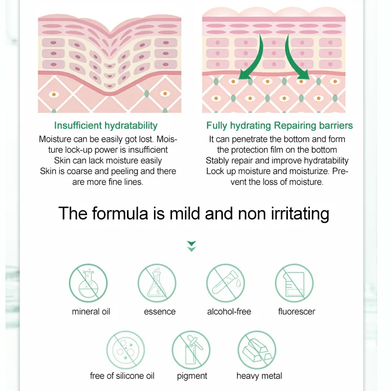 Cosmetic efficacy: shrink pores, moisturizing, after-sun repair, soft skin