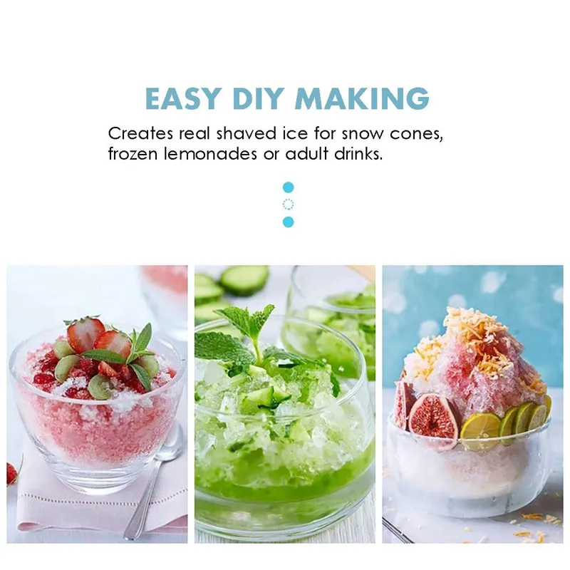 Creates real shaved ice for snow cones, frozen lemonades or adult drinks.