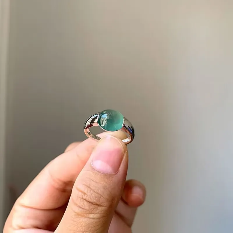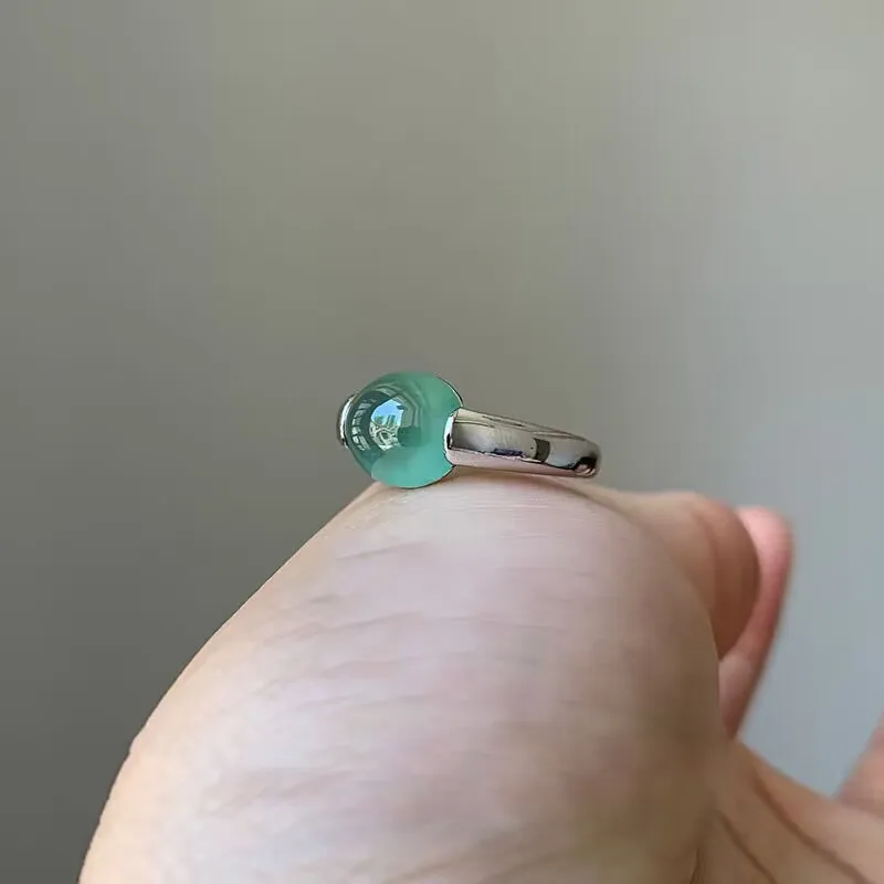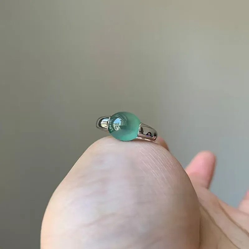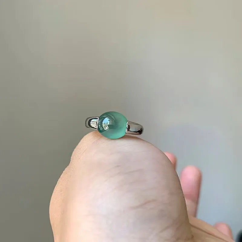 Ice-like Blue Water Egg Noodles Chalcedony Color Rich Inlaid Ring Copper Material Fashion Simple
